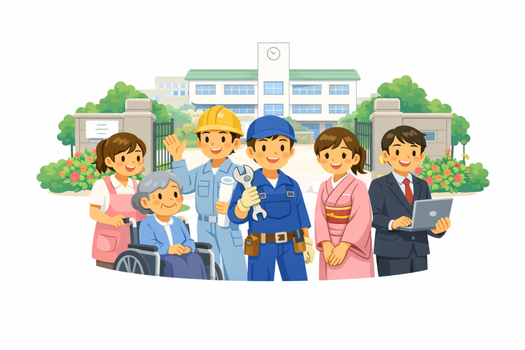 久保田国際学院の技能人材育成プロジェクトは、日本での就業や実地研修を見据え、分野別の基礎教育、日本語教育、生活理解支援を組み合わせながら、現場で安定して活躍できる人材の育成を目指す取り組みです。